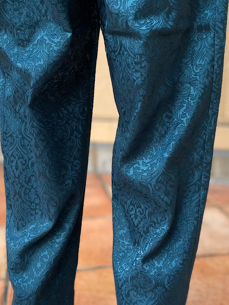 光沢感のあるジャガードのパンツは冬のシンプルコーディネイトのサシに◎