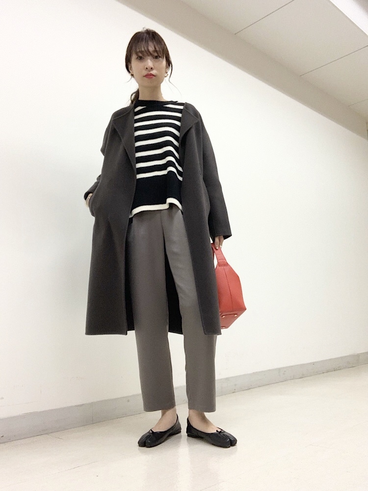 サイズ感:着丈少し短め。高身長だと38で足首ちらっと見える長さ。ボリュームのある靴とも相性良い。光沢ありアクセントになる素材。