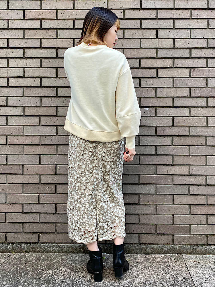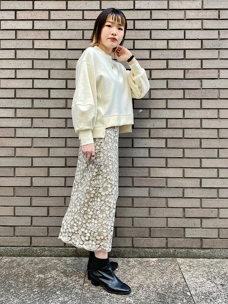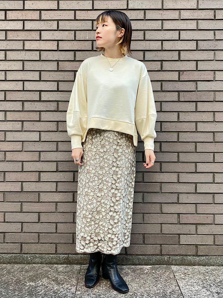 女性らしいレーススカートをカジュアルにコーディネート