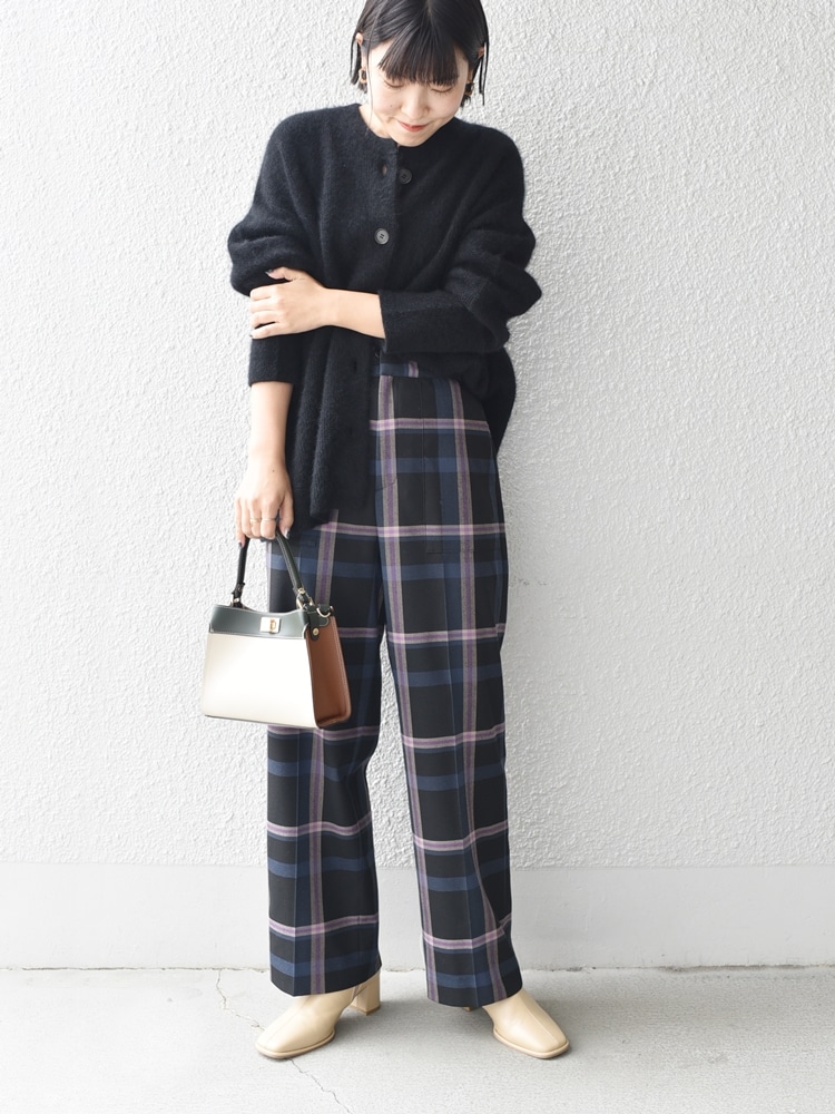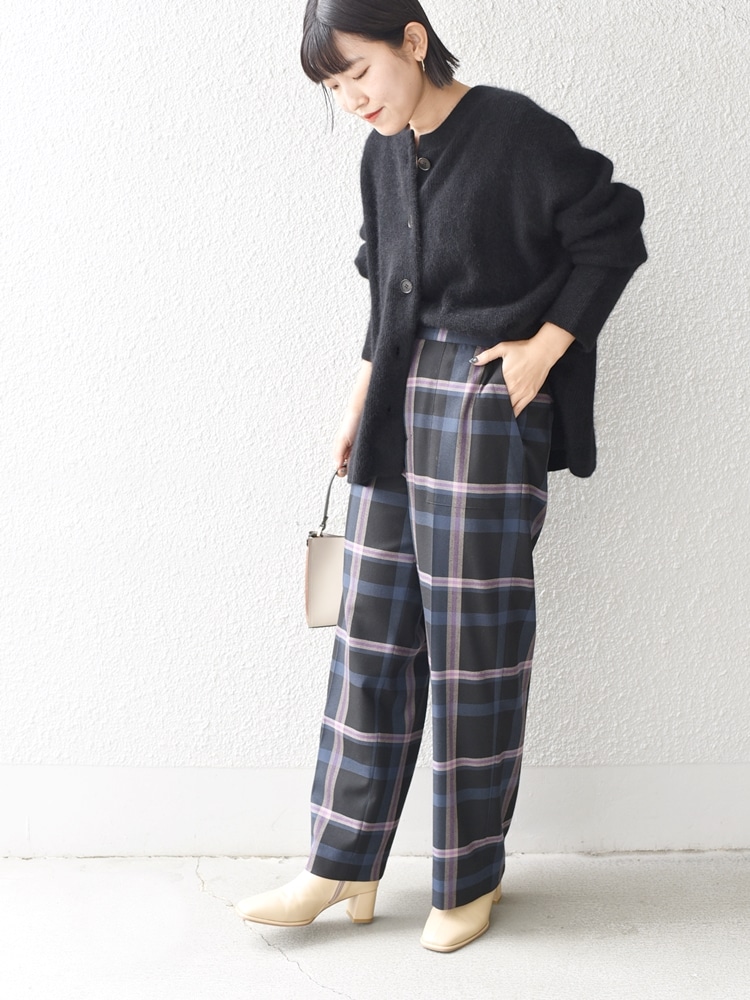 大きめのチェック柄が今年らしいスタイリングに仕上げます。