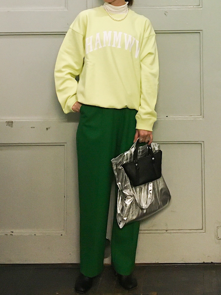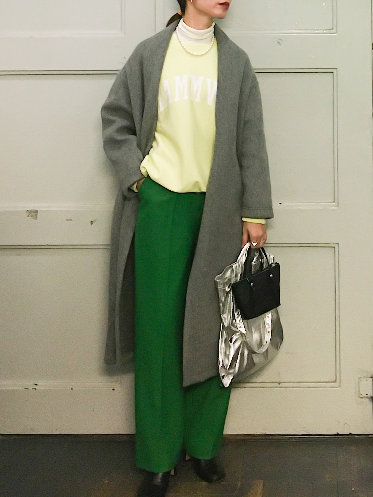 サイズ感:あえてワンサイズ上を着用し腰穿きに。ヒール合わせでちょうど良く、スニーカーなどで合わせてルーズに穿いても素敵です。