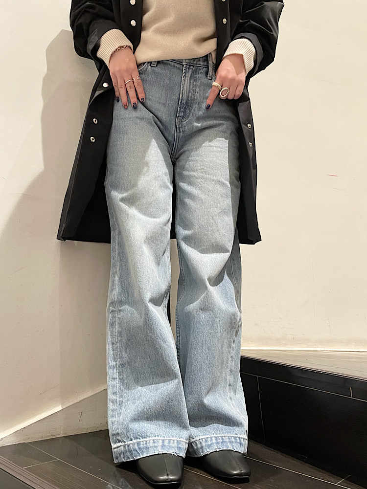 商品紹介:ハイウエストなので腰位置が高くみえ、全体的なバランスが良く見えます。ワイドすぎずスッキリ見えるシルエットが綺麗でした。