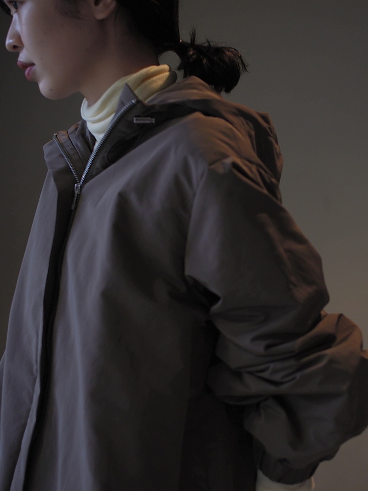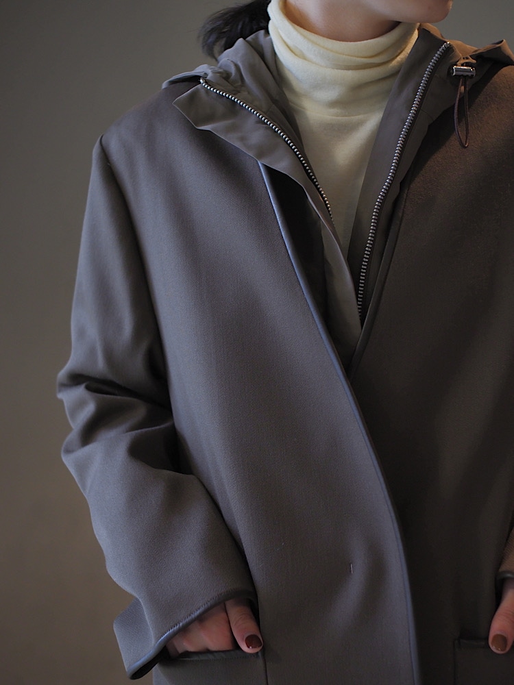 フードライナーとノーカラーコートがひとつに!