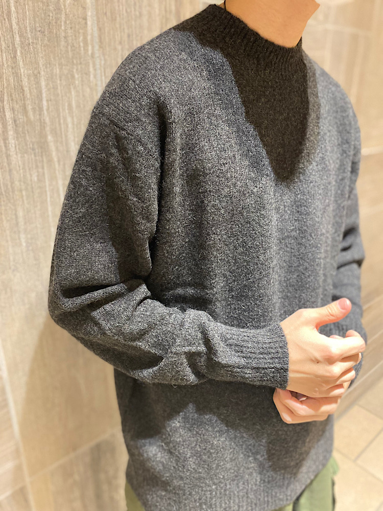 【素材感・着心地】ウール100%です。ヤクウールという温かさのある素材を使用しており、風合いは少しモヘアライクです。カラーバリエーションも多いので、コーディネートの引き立て役にオススメです!