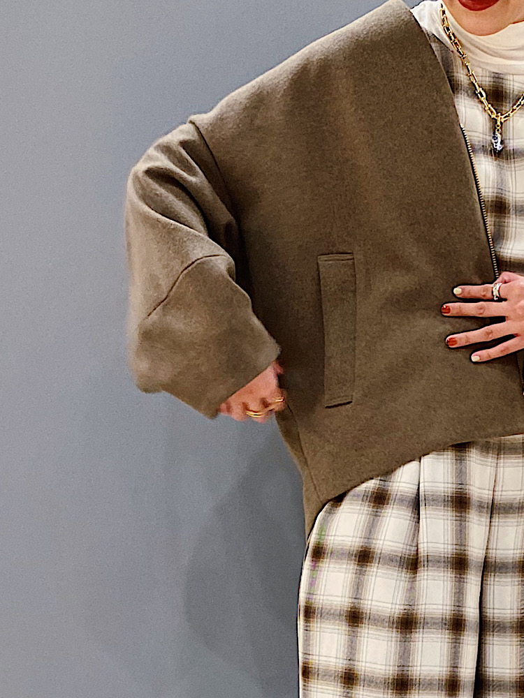 全体的にゆったりしているのでインナー次第で長い時期着ていただけます。