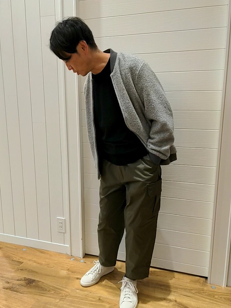 着用ポイント: ゆったりしている為サイズを下げ裾をたるませない。