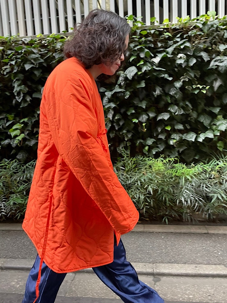 着心地:ゆったりとしてて羽織りやすく、インナーにスウェットやパーカーなども着用可能