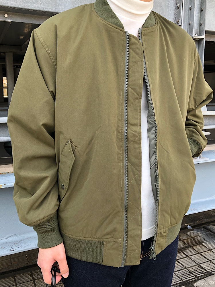 中綿入りのMA-1を羽織り、寒くなってきたのでgicipiのタートルネックを合わせたスタイリングです。