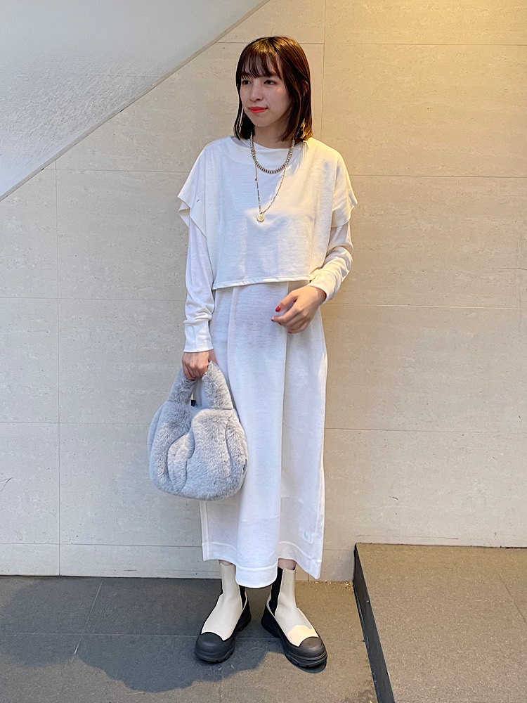 着心地:肉厚すぎず、滑らかで肌触りの良いウォッシャブルウールです。トップスとワンピースは別々での着用も可能です。
