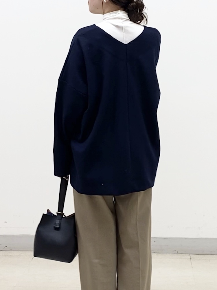 素材感・着心地:ウールで暖かく、少しハリがあり、柔らかい着心地。