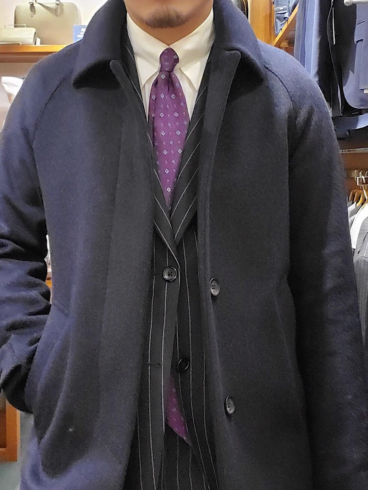 店頭でお客様からネイビースーツにネイビーコートて合いますか?とよく聞かれます。
