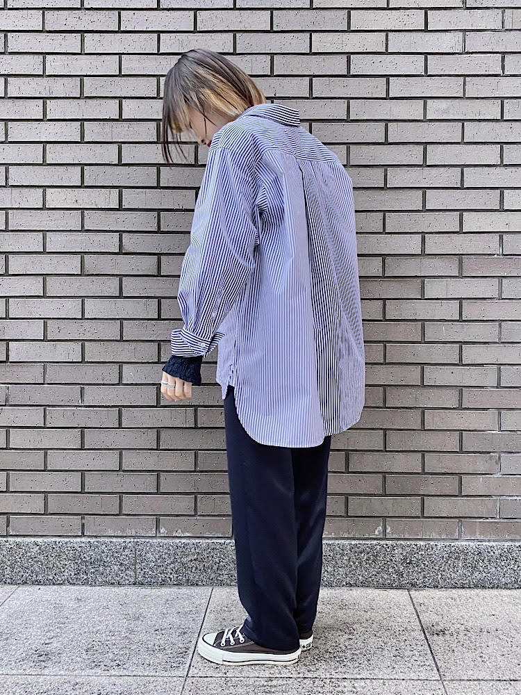 ざっくりしたシルエットなのですっきりしたボトムとの