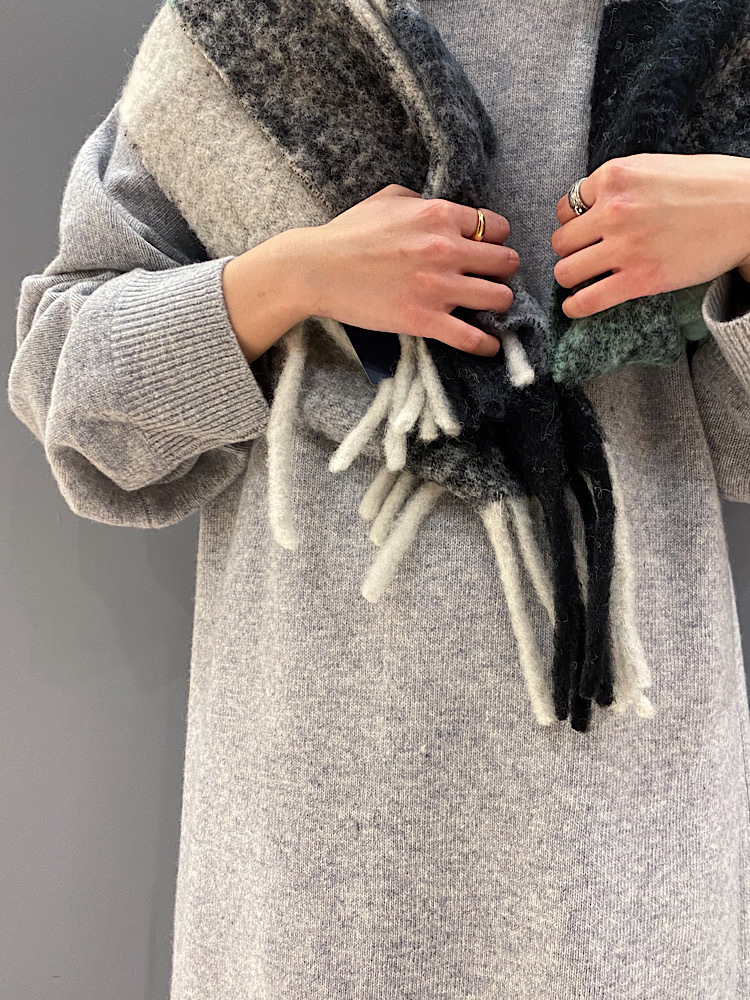 カシミヤ混でふっくらした素材感。