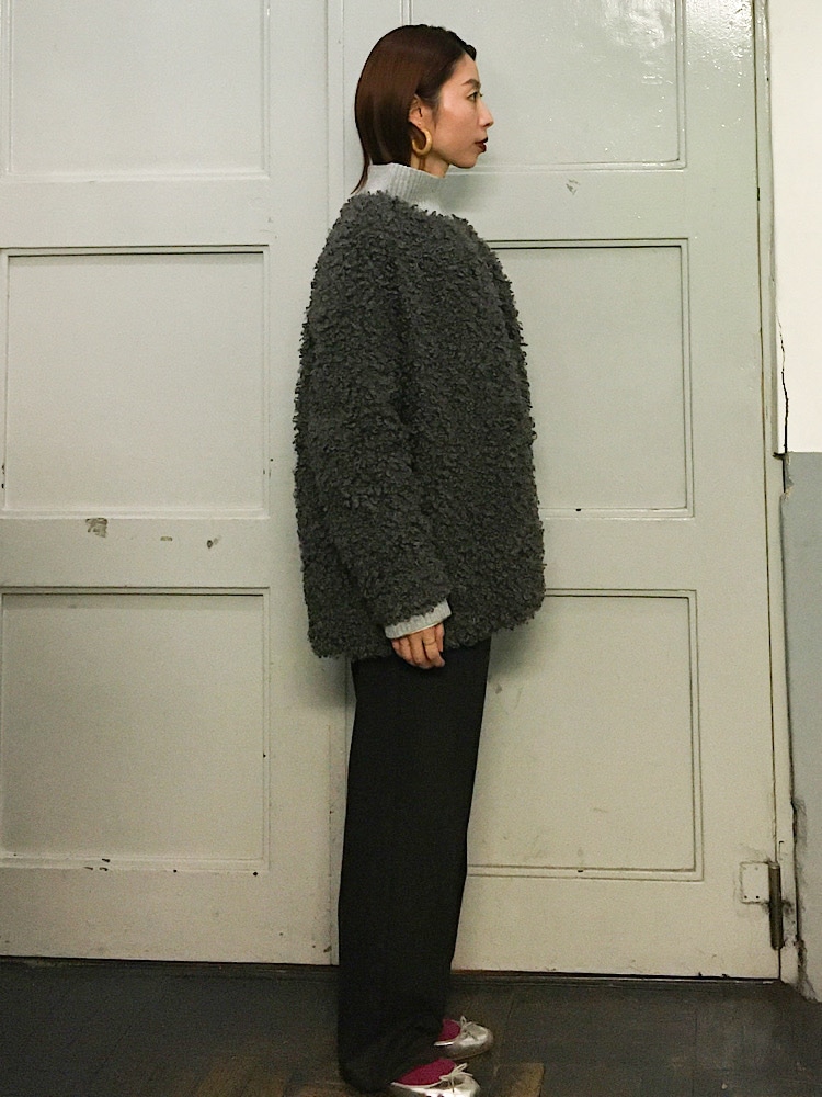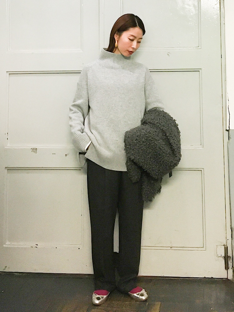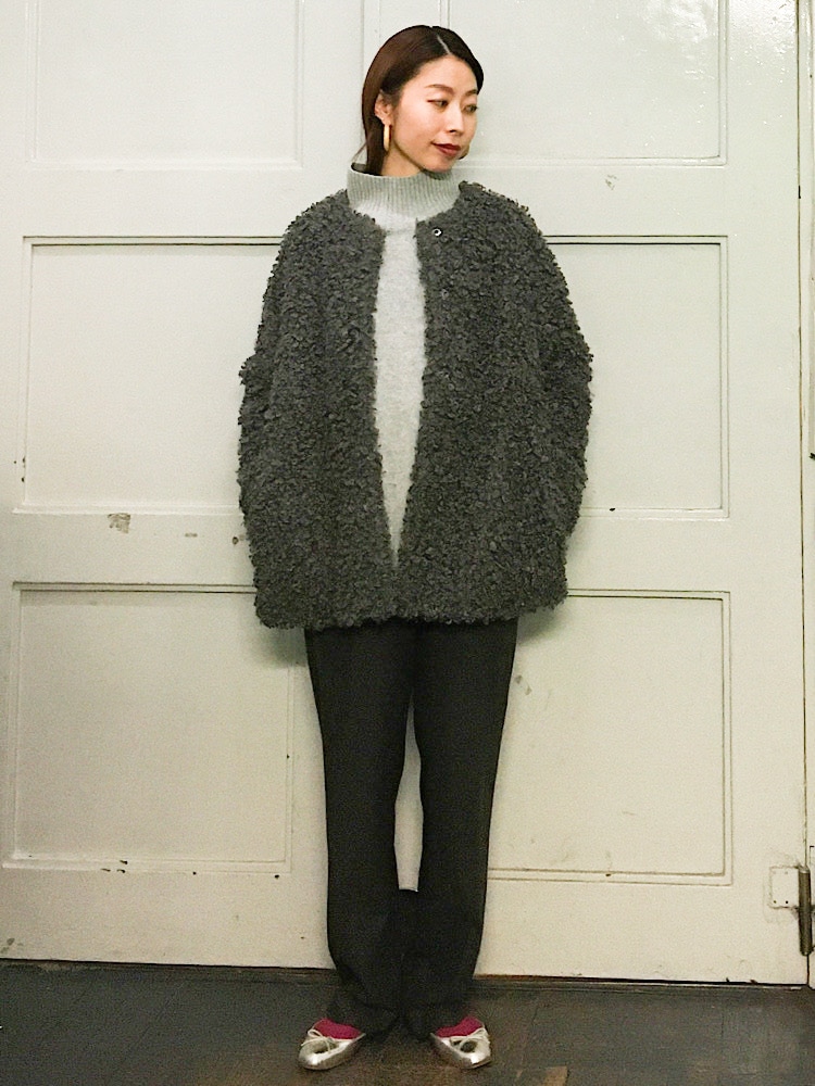 サイズ感:ニットを着ても羽織れる余裕のあるサイズ感ですがボリュームが出過ぎずスッキリ。