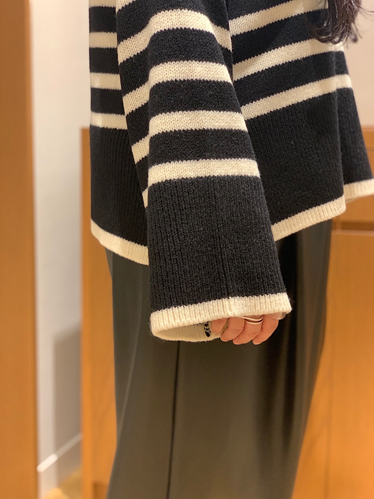 袖口の広がりが可愛いデザイン性のあるボーダーニットです!
