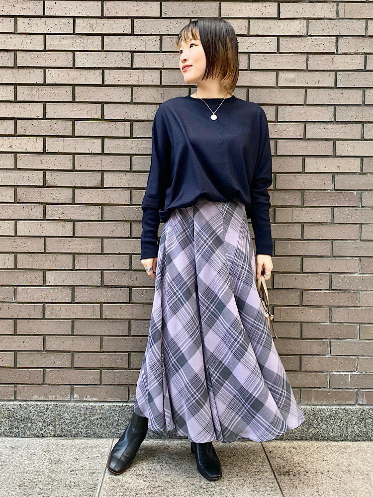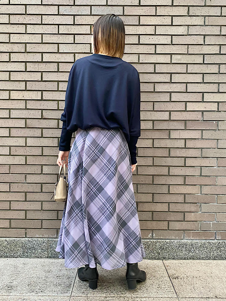 腰周りはスッキリしているのでざっくりしたニット合わせも