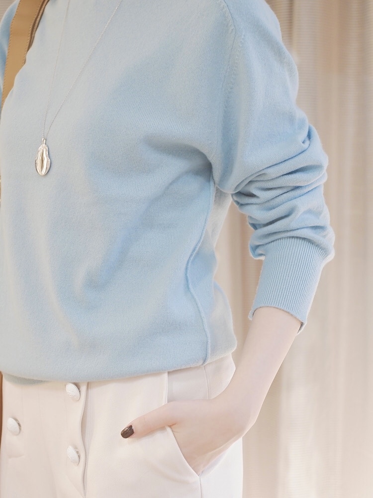 ◆カシミヤクルーネックニット