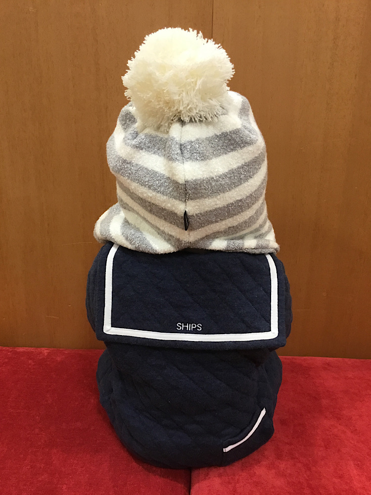 柔らかなキルト素材のロンパースなので、肌触りも良いです。デザインもSHIPSらしいセーラーカラー♪ 後ろ姿もSHIPSロゴとポケットがとても可愛いです。