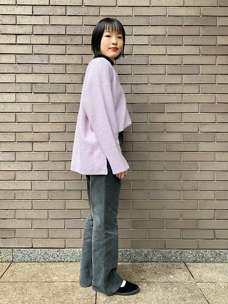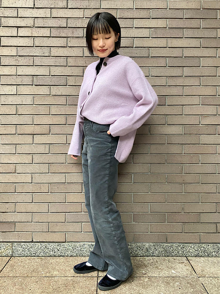 他はブラックでまとめ、甘さを抑えたコーディネート
