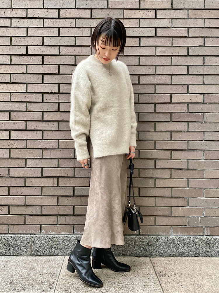 ゆったりめのニットを合わせて女性らしいメリハリのある