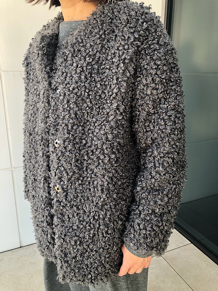 ◆素材感・着心地:ノーカラーで洗練された雰囲気♪裏地もありクルクルでふわふわと