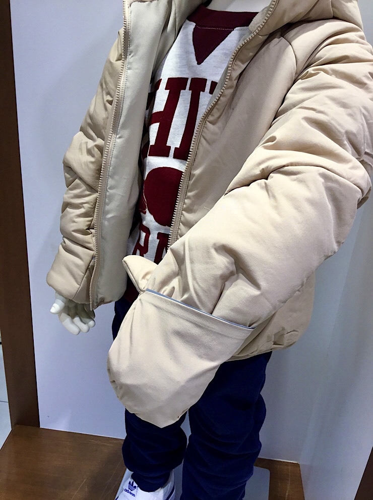 MOUTEN:AIR MITTEN BLOUSON …軽くてとてもあたたかいアウター! ミトンにもなる所が手袋要らずでおすすめです。 品番514-05-0425〜0426 Size 110〜160cm