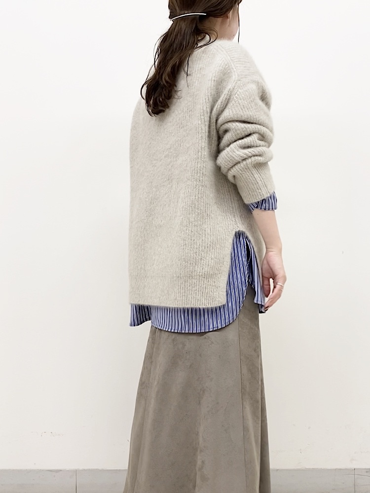 素材感・着心地:フォックスウールでふんわりとした生地感が特徴的。柔らかい印象で着ていただけます。