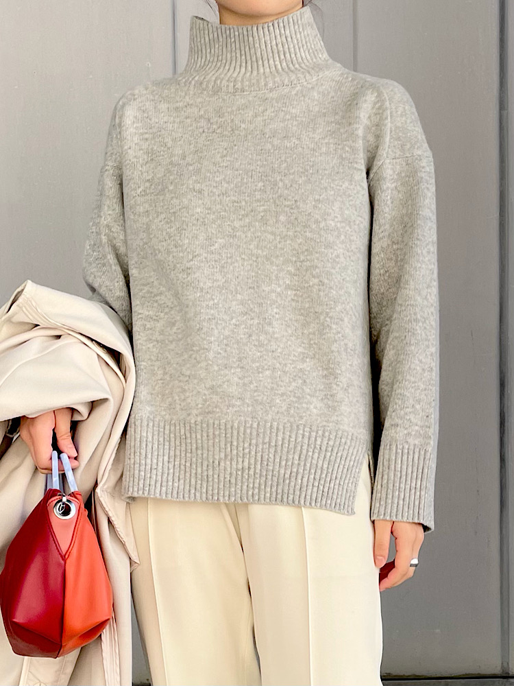 首元がすっきりしており、タートルネックやストールとのバランスも可愛いです。