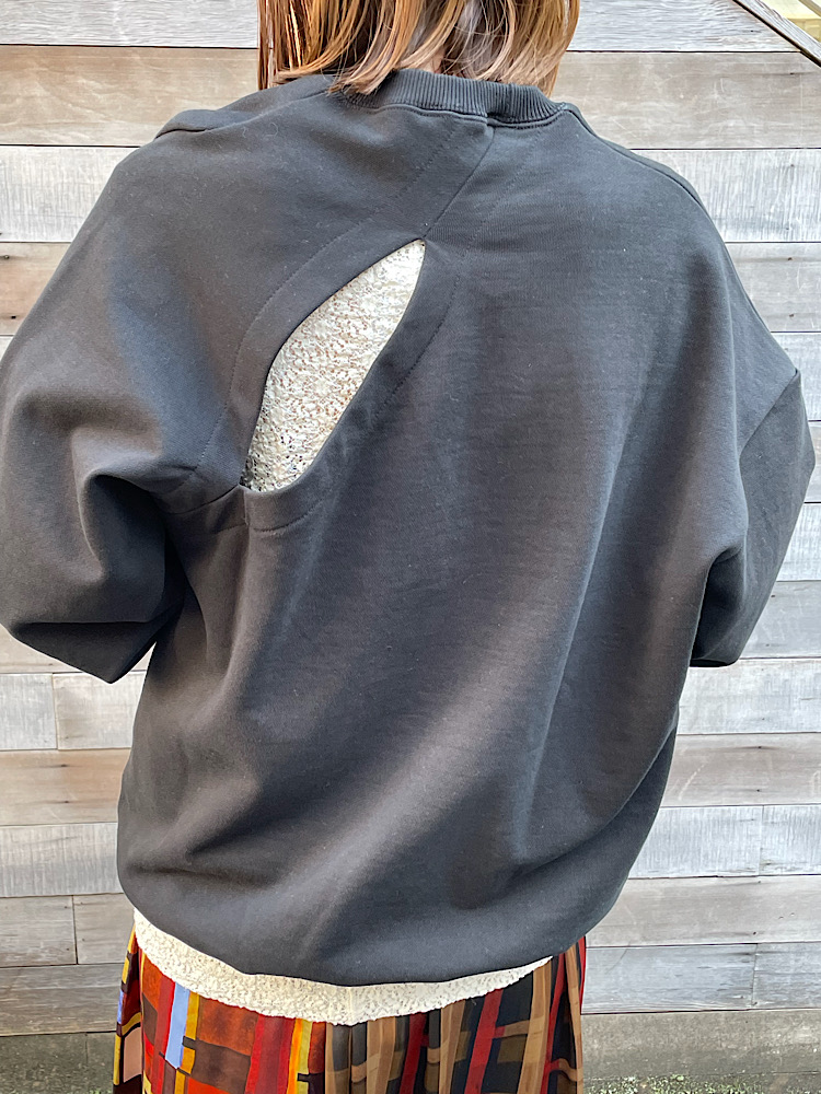 着心地:一見ベーシックなデザインですが、バックスリットがポイントです。インナーに色物やレースなどを合わせて着こなしを楽しんで頂けます!