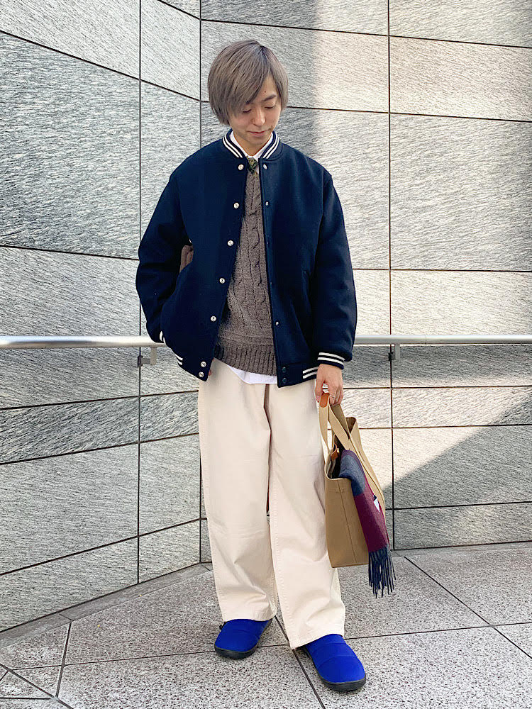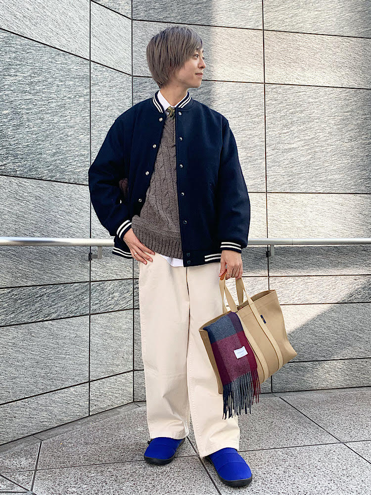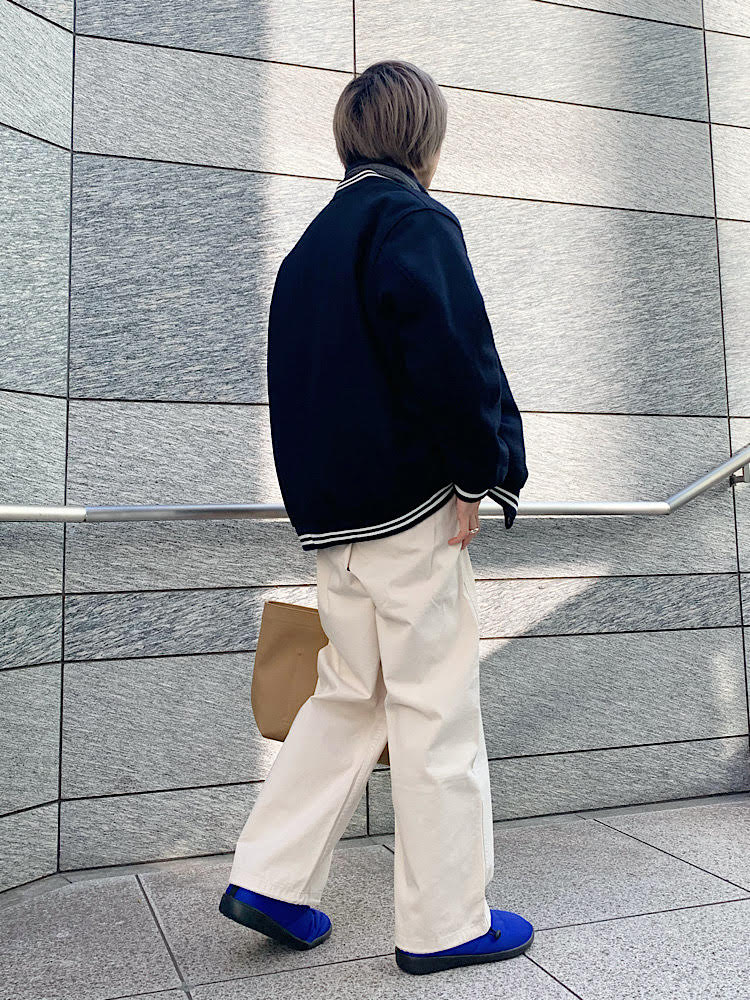 トレンド感のあるスタジャンできれいめなカジュアルスタイル!