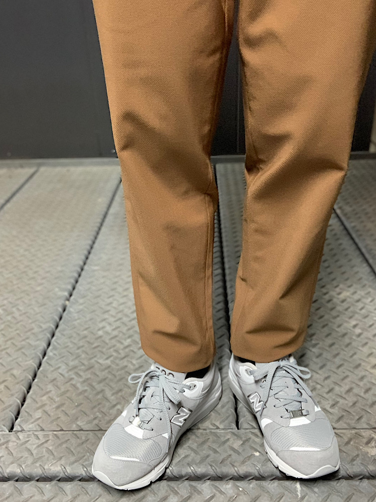 サイズ感:ヒップ部はゆとりを持たせ、裾に向かって細くなるテーパード仕様。