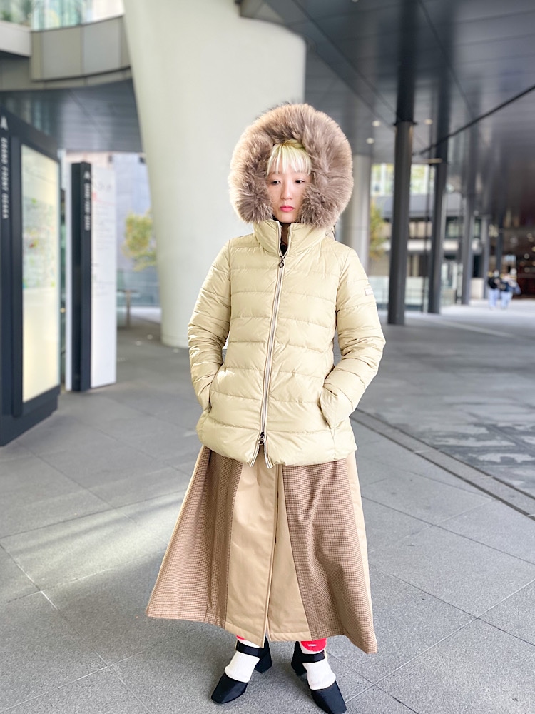 着こなしポイント: 160cm以上、中のインナーをデザインニットや肉厚なニットを着用される方は、3をおすすめします