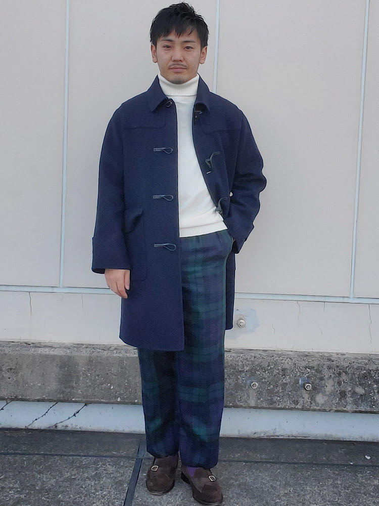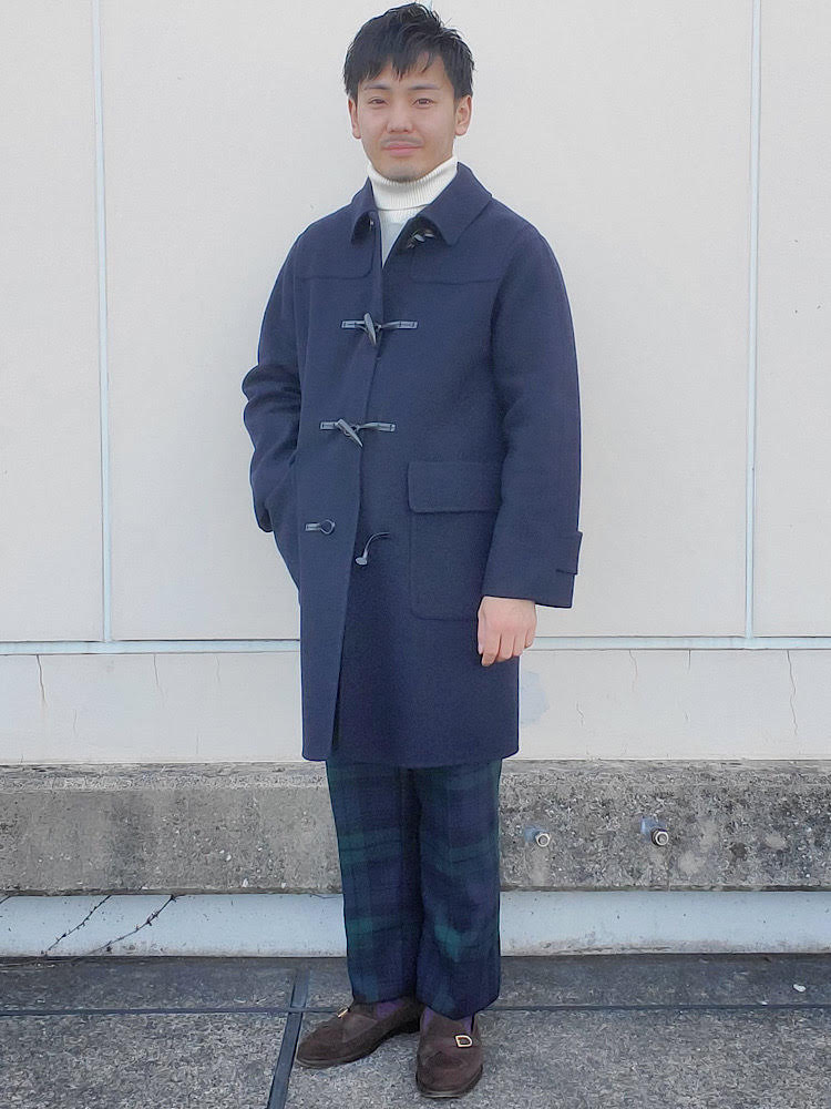ネイビーコート×タートルネックのキレイめな色合わせで上品なカジュアルスタイル