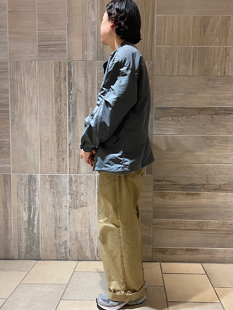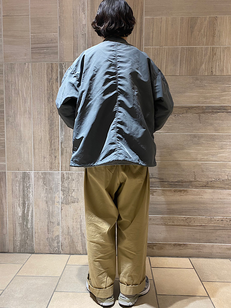 【素材感・着心地】ポリエステル、ナイロン素材です。モッズコートをショート丈にしたデザインで、インナーとのレイヤードスタイルが楽しめると思います。ミリタリーコーデにもピッタリです!