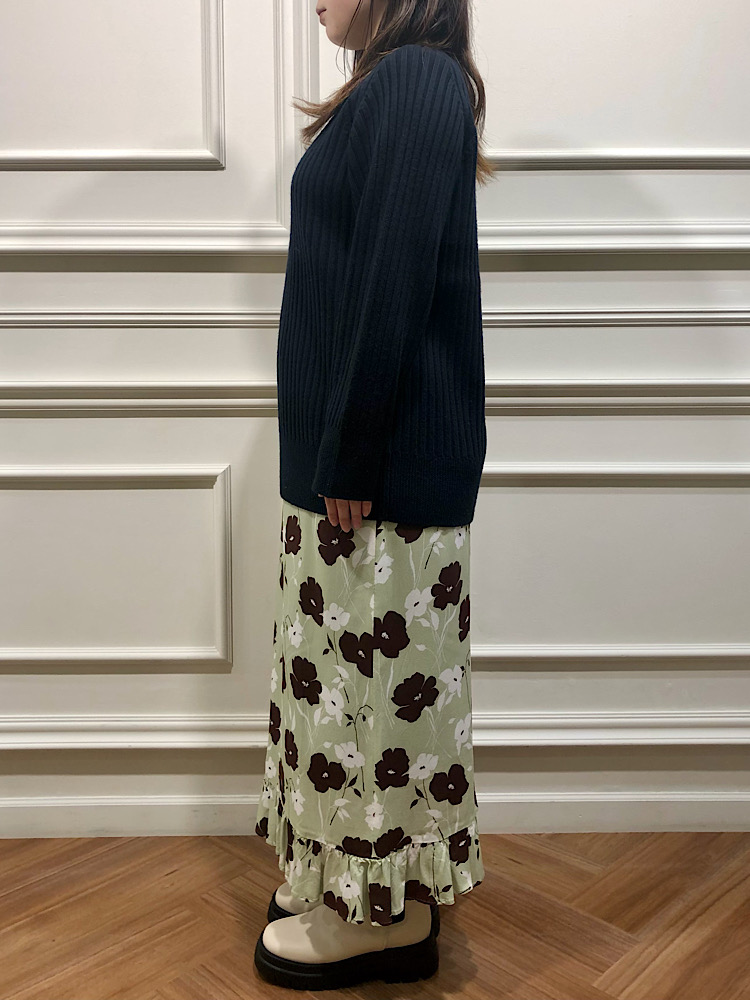 着心地:太めのリブが可愛らしく、カジュアルすぎないです。