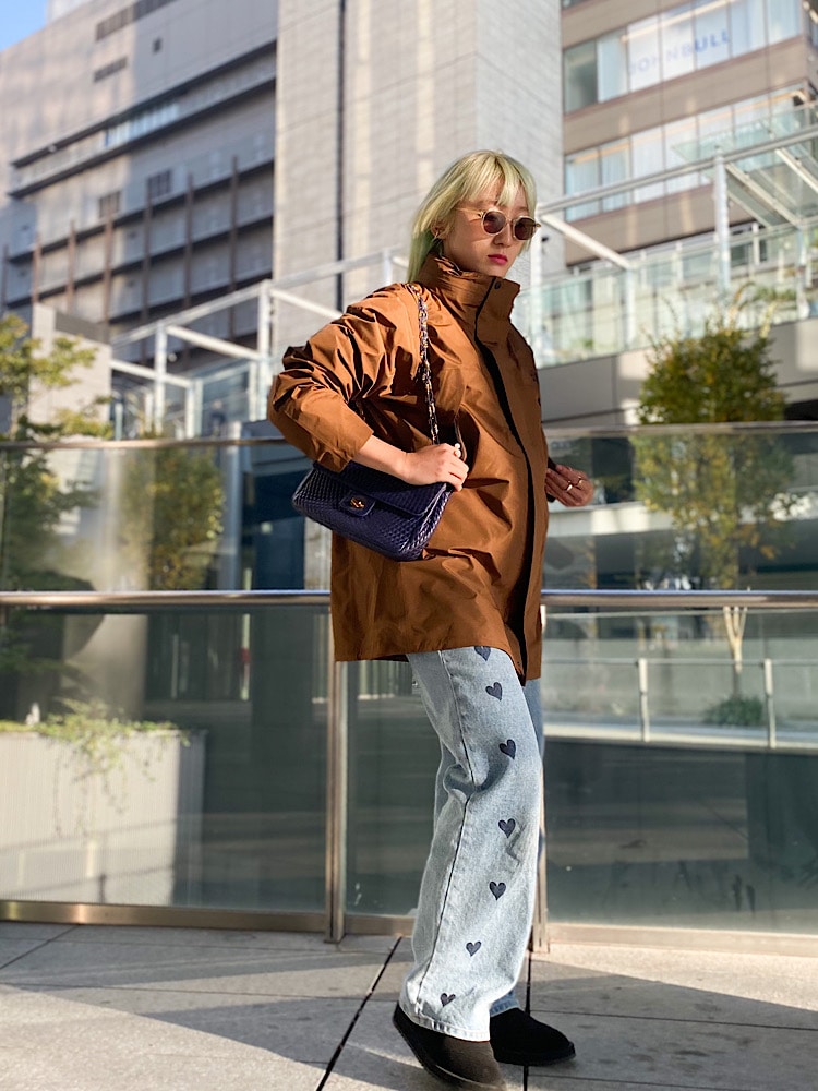 着こなしポイント: Mサイズは中にニットやスウェットがきやすいサイズ感andビッグシルエットにならないサイズです