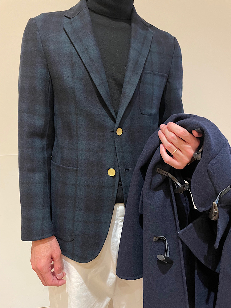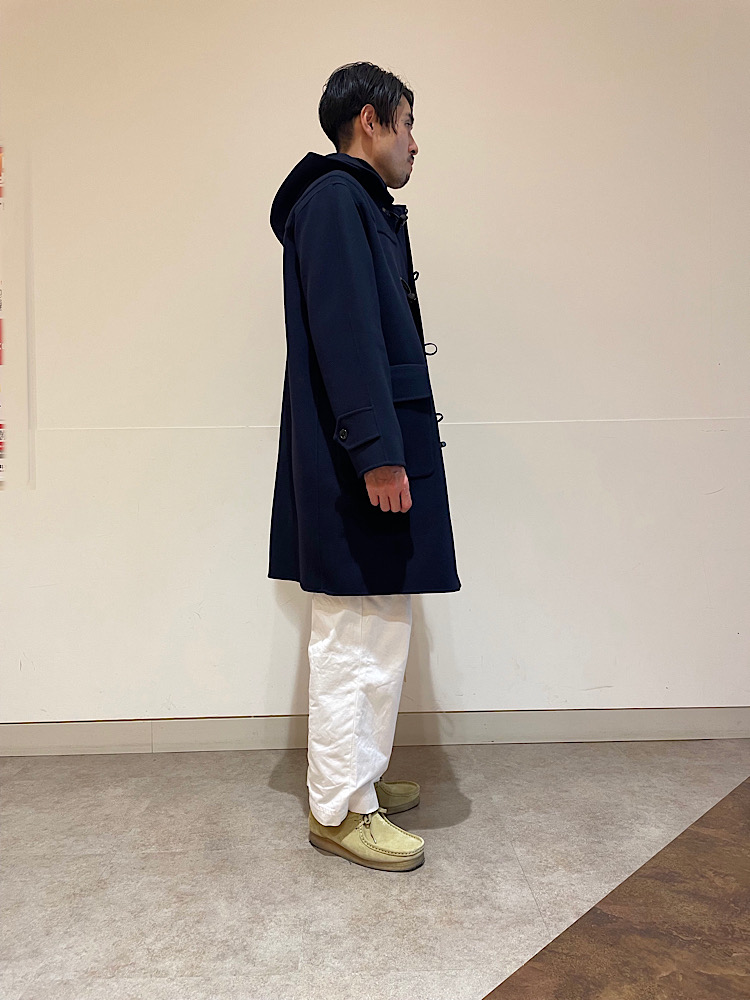 ダッフルコートらしくややゆったりしたサイズ感です。ゆったりシルエットで着ていただく方がオススメです。