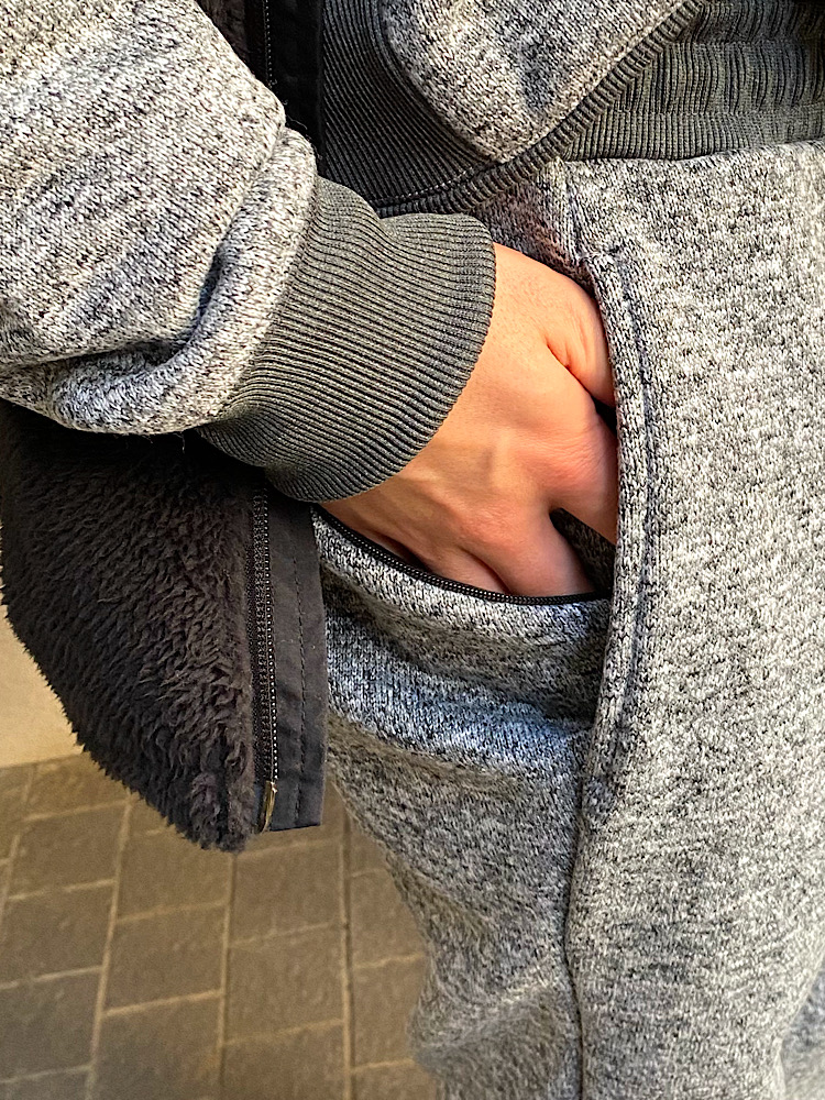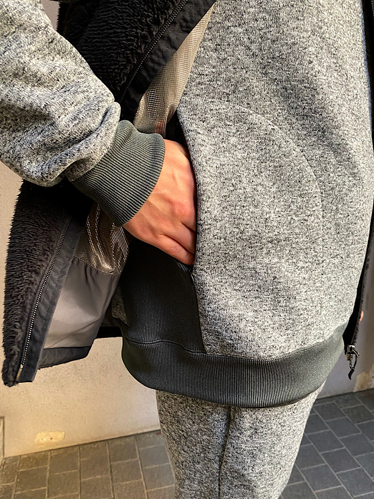 素材感/着心地:リラックス感があり、1枚でもとてもあたたかいです。ムレにくさもあり、快適な着心地です。大きめのポケットがあるので便利です。