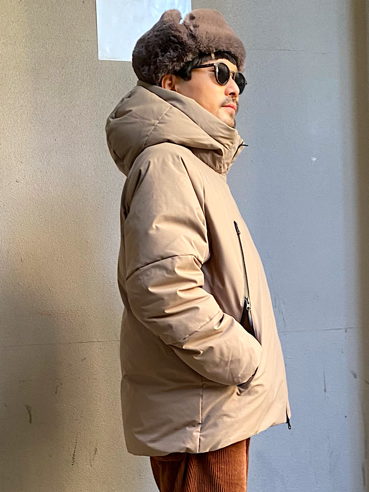 素材感/着心地:適度なボリュームがあり、今の気分に合うシルエットです。ポケットがたくさん付いているので、バッグが苦手な方にオススメです。