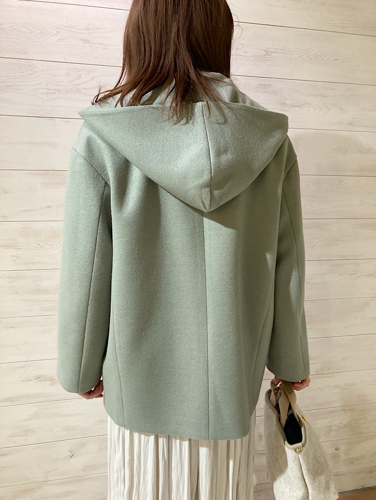 【素材感・着心地】軽いです。前を開けて着る際、フードの形が綺麗に見えるデザインです。