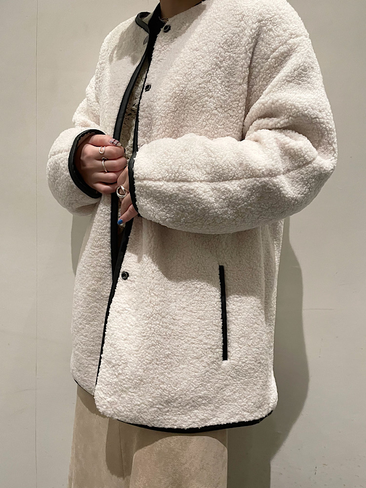 商品紹介:ボアの毛足を少し短めに作っているので着膨れしにくく、スッキリとしたサイズ感です。着丈も短すぎず長すぎないのでどんなボトムとも相性がいいです。