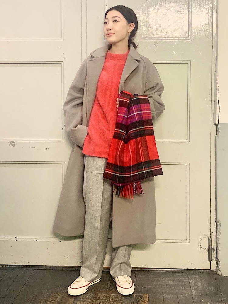 着用アイテム:ウールカシミヤチェック/ソリッドパンツ