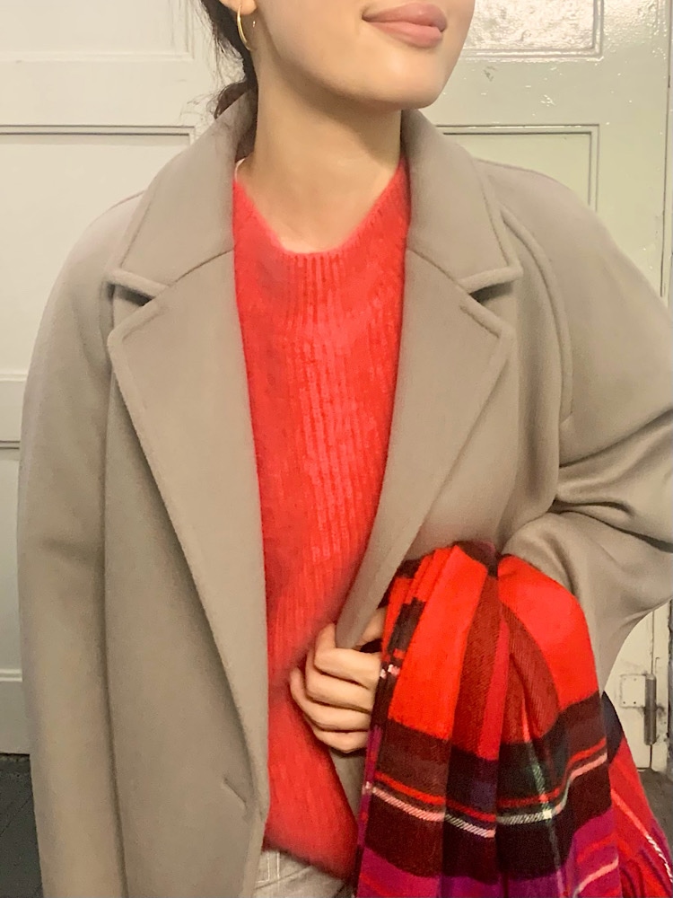 素材感・着心地:肉厚で立体感のあるウール地です。ラグランの丸みのあるフォルムが綺麗です。