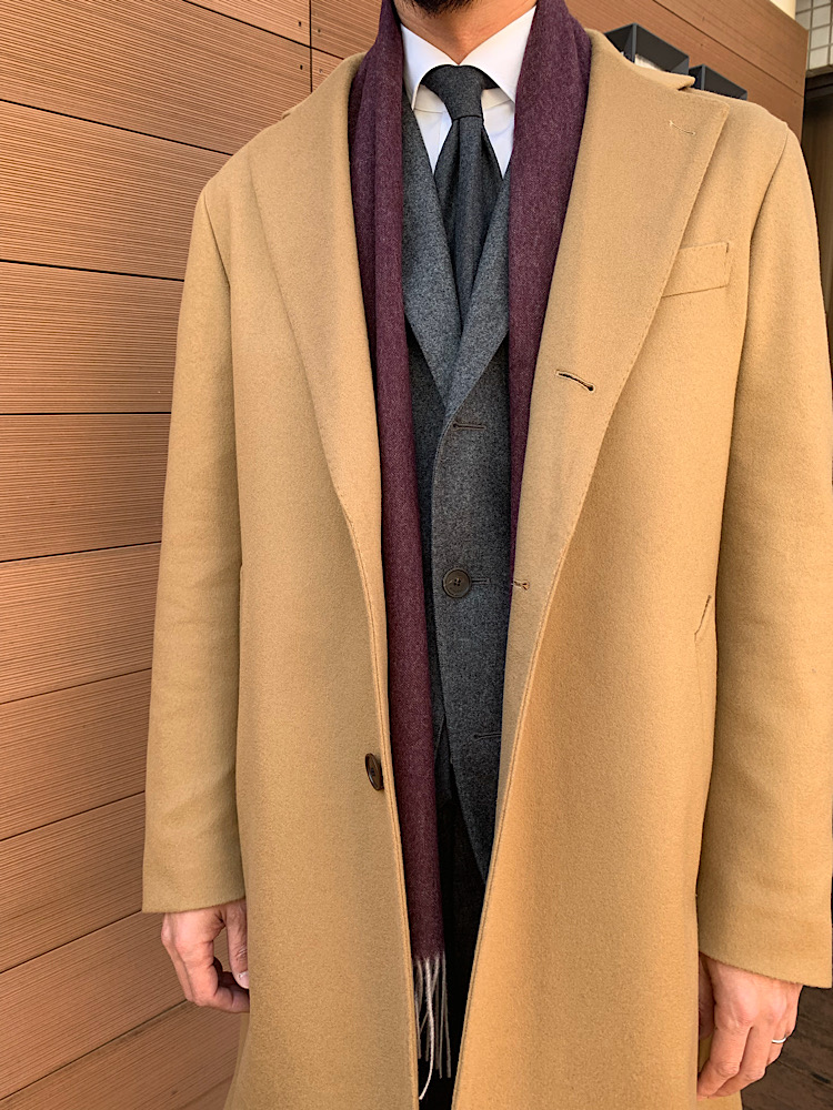 サイズ48のスーツの上からでもスッキリ且つ動きの取りやすいサイズ感