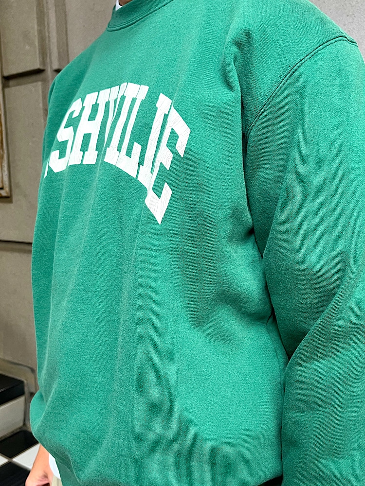 カレッジロゴのスウェットを定番のチノとクラークスで合わせました。パンツとシューズの色を合わせて統一感を意識しました。