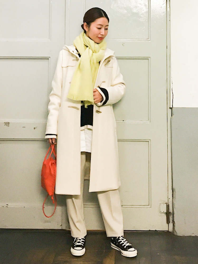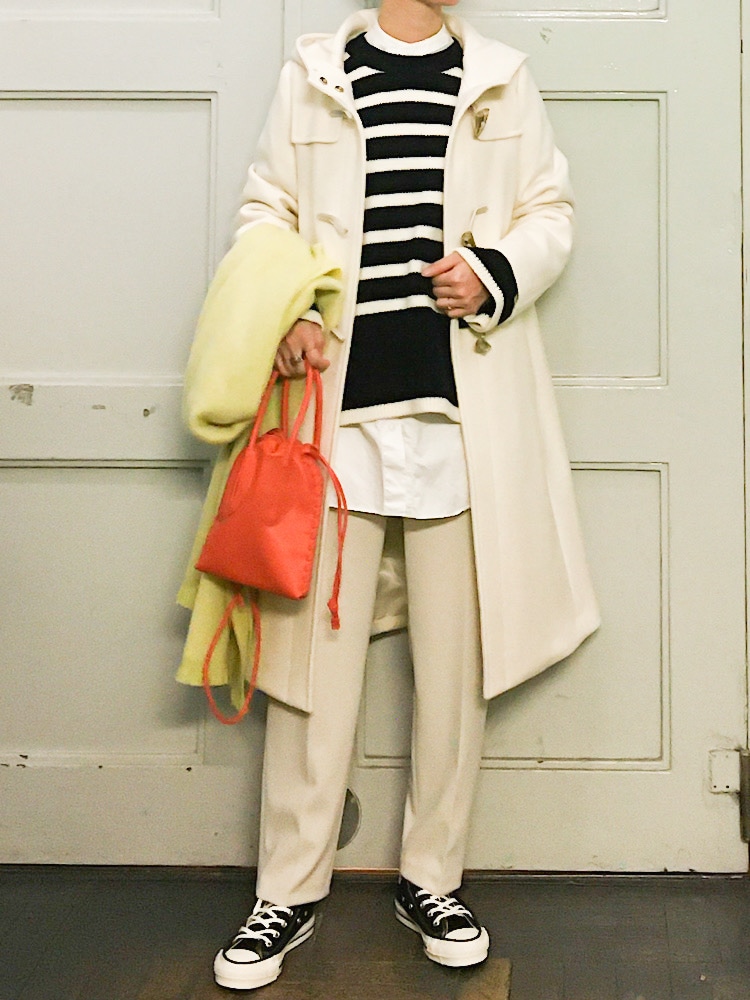 素材感・着心地:見た目より軽くウールにナイロンとカシミヤ混でしっとり柔らかいです。