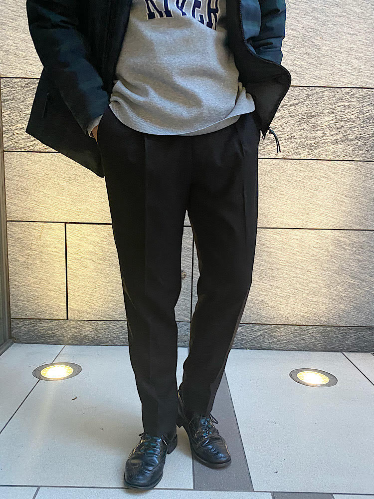 サイズ感:ミドルゲージのニットの上からの着用で適度にゆとりもあり丁度良いサイズ感。