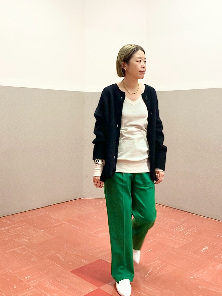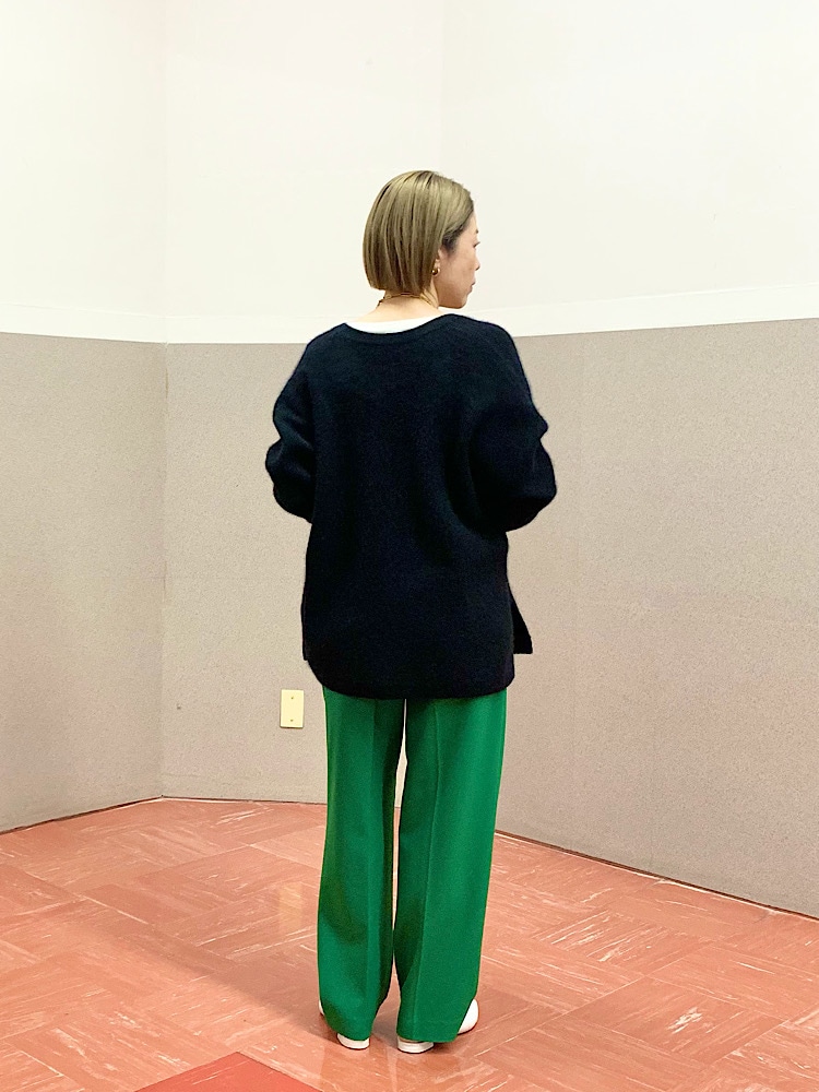 サイズ感:ややゆったり。ドロップショルダーで、薄手のインナーが着られる。