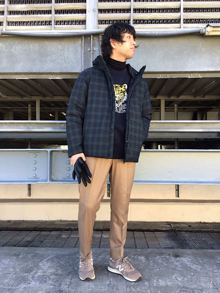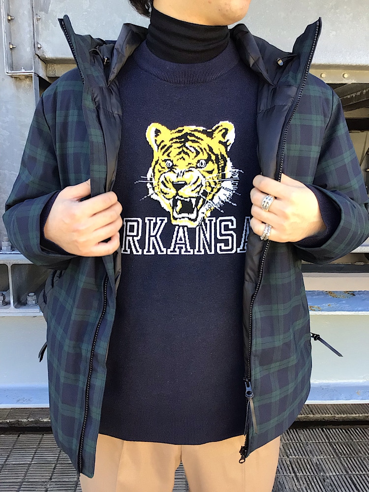 これからの寒い時期に大活躍する河田ダウンを羽織り、存在感のあるカレッジセーターを合わせてます!薄手のタートルネックでレイヤードスタイルにしてみました。