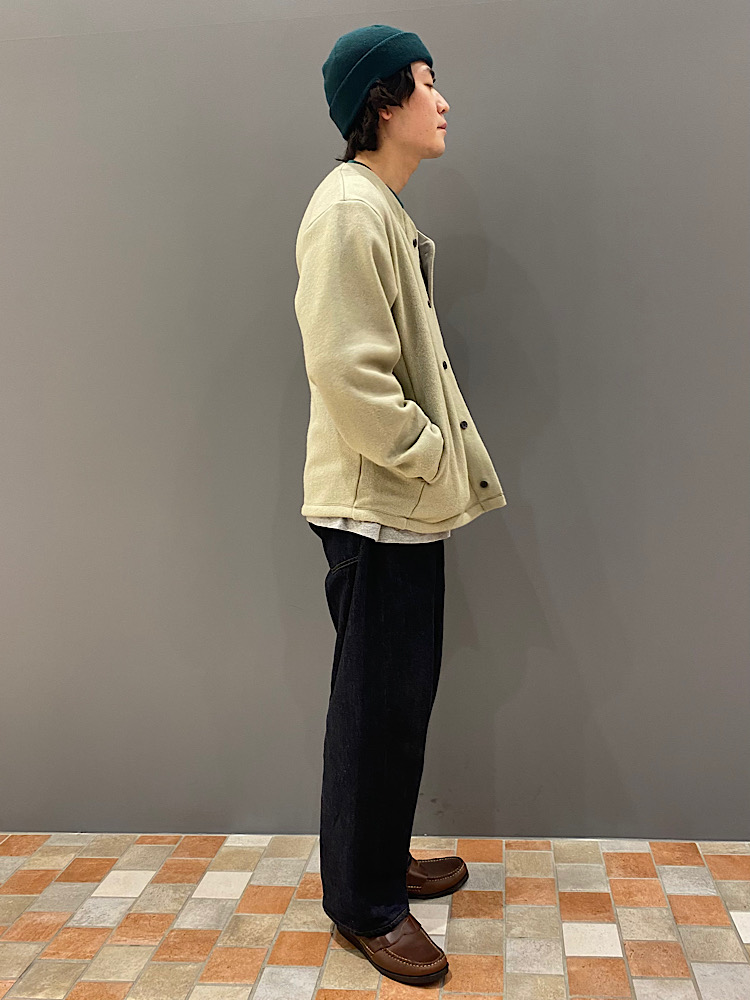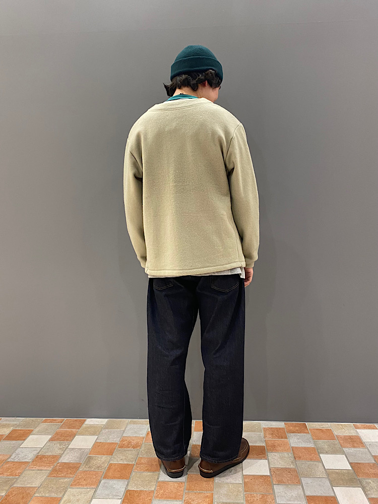 【素材感・着心地】アクリル、ナイロン、ウール素材です。浅めのV字なので、より綺麗目な印象があります。見た目もそうですが、肉厚なので温かさもあります。